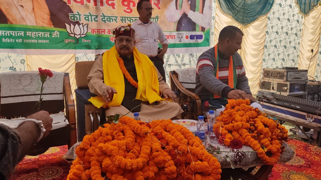 कैबिनेट मंत्री सतपाल महाराज ने मतदाताओं से भाजपा प्रत्याशी विनोद कुमार को भारी मतों से जिताने की अपील करते हुए कहा कि केंद्र सरकार एक पावर हाउस के समान होता है और जो पावर हाउस से जुड़ता है उसे केंद्र की सहायता मिलती रहती है। वहां विकास तेज गति से होता है। उन्होंने अपने संबोधन में केंद्र की मोदी सरकार की उपलब्धियों का जिक्र करते हुए कहा कि केंद्र सरकार कई ऐसी जन कल्‍याणकारी योजनाएं लेकर आई, जिनसे आम लोगों को बेहद लाभ पहुंचा। जन धन योजना, आयुष्‍मान योजना, प्रधानमंत्री गरीब कल्‍याण अन्‍न योजना और उज्‍ज्‍वला योजना से करोड़ों लोगों के जीवन में परिवर्तन देखने को मिला।