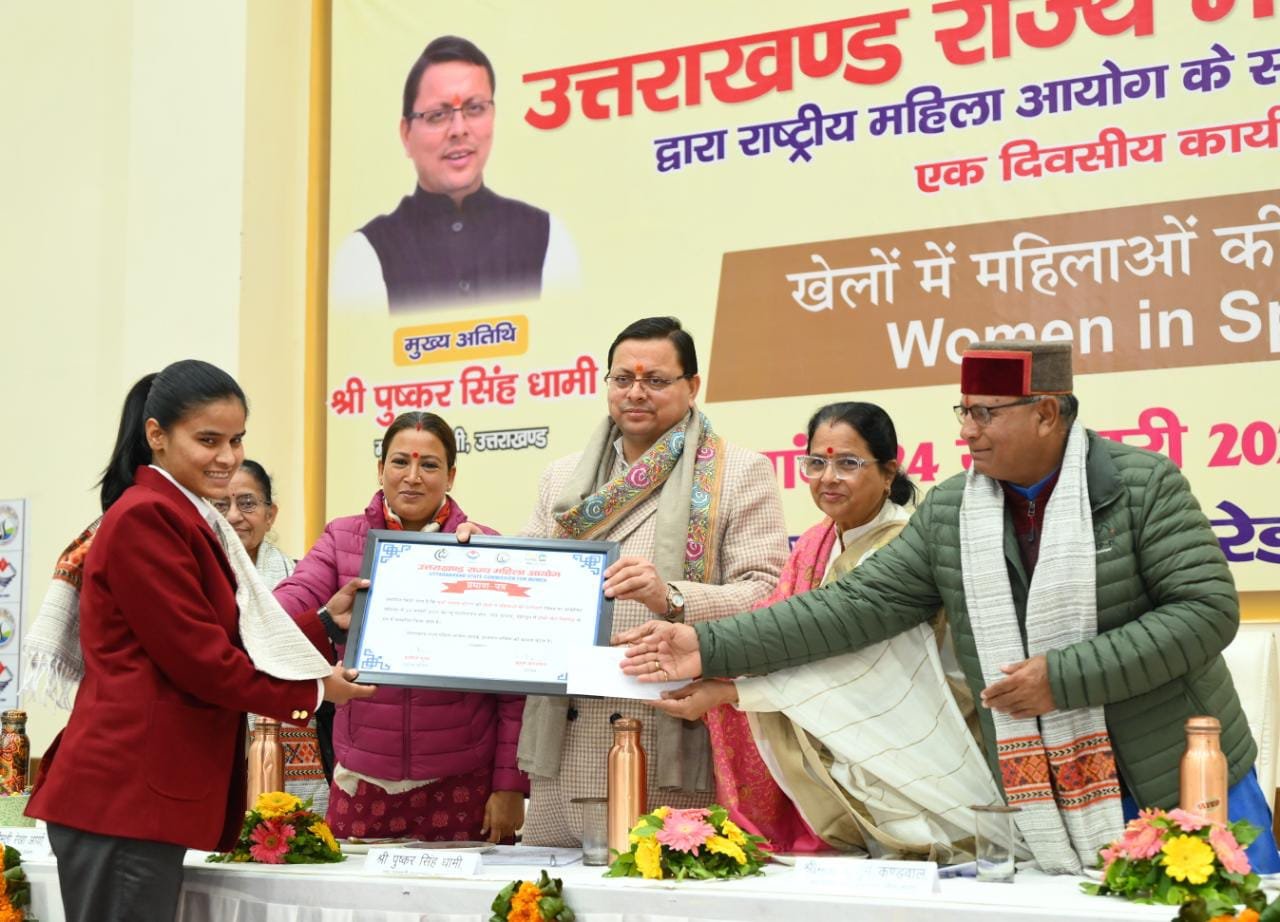 देहरादून। मुख्यमंत्री पुष्कर सिंह धामी ने मंगलवार को राष्ट्रीय बालिका दिवस के अवसर पर परेड ग्राउण्ड देहरादून स्थित नवीन बहुद्देशीय हॉल में ‘महिलाओं की खेल में सहभागिता’ विषय पर आयोजित सेमिनार में प्रतिभाग किया। इस अवसर पर उन्होंने विभिन्न खेलों में सराहनीय प्रदर्शन करने वाले महिला खिलाड़ियों को सम्मानित भी किया। मुख्यमंत्री ने प्रदेश की सभी बालिकाओं को राष्ट्रीय बालिका दिवस की शुभकामनाएं दी। उन्होंने कहा कि राष्ट्रीय बालिका दिवस महिला सशक्तिकरण को लेकर हमारी प्रतिबद्धता को दोहराने और बालिकाओं को जीवन के प्रत्येक क्षेत्र में सशक्त बनाने के लिए चल रहे प्रयासों को और अधिक मजबूत करने का एक महत्वपूर्ण अवसर है। उन्होंने कहा कि बेटियों की सुरक्षा हम सभी की जिम्मेदारी है। राज्य का मुख्य सेवक होने के नाते प्रदेश की किसी भी बेटी का अपमान करने वाले के खिलाफ हम कठोरतम कार्रवाई करने से कभी पीछे नहीं हटेंगे। हमारी बेटियां हमारी शान, मान एवं अभिमान हैं। मुख्यमंत्री ने कहा कि उत्तराखंड में तीलू रौतेली, टिंचरी माई, गौरा देवी, चन्द्रप्रभा ऐतवाल, गंगोत्री गर्ब्याल और बछेंद्री पाल, वंदना कटारिया जैसे अनेक नाम हैं जिन्होंने हर चुनौती को छोटा साबित करते हुए प्रदेश का मान और सम्मान बढ़ाया। आज हमारी बेटियों ने हर क्षेत्र में अपना एक अलग मुकाम बनाया है और प्रदेश का नाम रोशन किया है। शिक्षा से लेकर खेल के मैदान और वैज्ञानिक अनुसंधान से लेकर सेना के अभियान तक में हमारी बेटियां बढ़ चढ़ कर हिस्सा ले रही हैं।