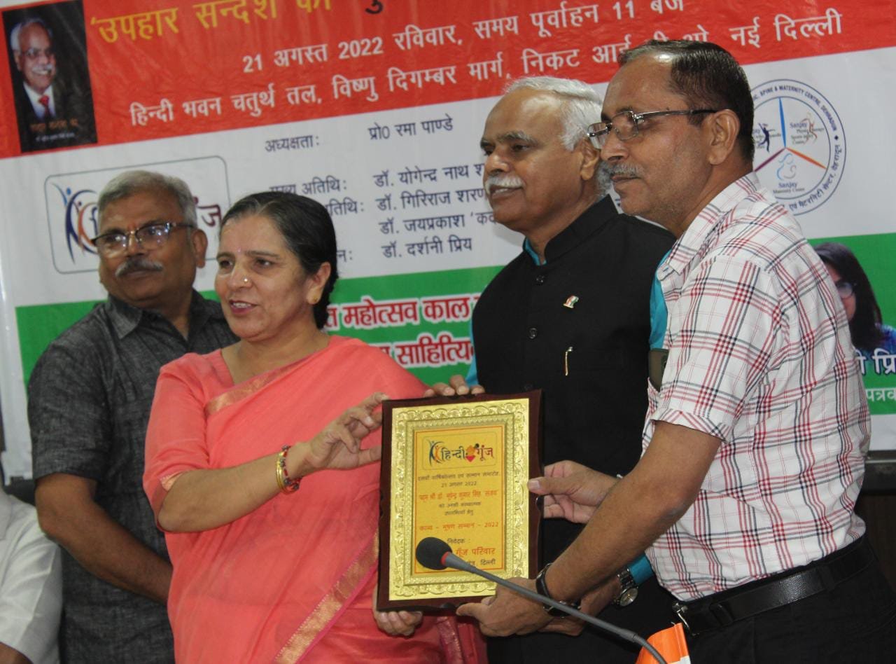 देहरादून। भारतीय ज्ञानपीठ द्वारा प्रकाशित संजय ऑर्थोपीडिक, स्पाइन एवं मैटरनिटी सेंटर देहरादून के निदेशक डॉ भूपेंद्र कुमार सिंह संजय की पुस्तक “उपहार संदेश का“ को नई दिल्ली के हिंदी भवन में आयोजित परिचर्चा कार्यक्रम में देश के नामचीन साहित्यकारों ने डॉ. संजय के काव्य शिल्प को जहां उत्कृष्ट बताया वही उनके ग्रामीण पृष्ठभूमि से जुड़े पक्ष को भारत की आत्मा के रूप में परिभाषित किया। कार्यक्रम के मुख्य अतिथि हिंदी के सुविख्यात विद्वान डॉ. योगेंद्र नाथ शर्मा श्अरुणश् ने कहा कि यदि एक चिकित्सक सरस्वती पुत्र बन जाता है तो निश्चित रूप से इससे संवेदना उत्पन्न होगी और वह एक सफल चिकित्सक भी सिद्ध होगा। वह प्रेरणा का अमृत बन गए हैं। चिकित्सा के क्षेत्र में शल्य शिल्पी डॉ. संजय साहित्य में भी सफल सिद्ध हैं, जो उनके अंदर छिपे एक संवेदन व्यक्त्वि का प्रमाण है।