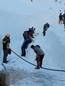 जिलाधिकारी के निर्देशों के अनुपालन में श्री केदारनाथ धाम यात्रा को सुगम एवं सुव्यवस्थित ढंग से संचालित करने के लिए संबंधित अधिकारियों द्वारा की जाने वाली तैयारियां एवं व्यवस्थाओं को त्वरित गति से किया जा रहा है। केदारनाथ धाम में की जाने वाली तैयारियों एवं व्यवस्थाओं को समयबद्धता के साथ करने के उद्देश्य से केदारनाथ पैदल मार्ग से डीडीएमए द्वारा बर्फ हटाने का कार्य त्वरित गति से किया जा रहा है। इस आशय की जानकारी देते हुए अवर अभियंता डीडीएमए सुरेंद्र सिंह रावत ने अवगत कराया कि यात्रा मार्ग से बर्फ हटाने का कार्य शीघ्रता से किया जा रहा है जिसके लिए 50 मजदूरों को बर्फ हटाने के कार्य में लगाए गए हैं जिनकी तीन टीमें बनाई गई हैं जो यात्रा मार्ग के अलग-अलग स्थनों से बर्फ हटाने का कार्य तेजी से कर रहे हैं। सहायक अभियंता राष्ट्रीय राजमार्ग राजवीर सिंह चैहान ने अवगत कराया है कि केदारनाथ यात्रा मार्ग के विभिन्न स्थानों में सड़क किनारे पड़े मलवे को हटाने एवं क्षतिग्रस्त पुस्तों का कार्य तत्परता से किया जा रहा है।