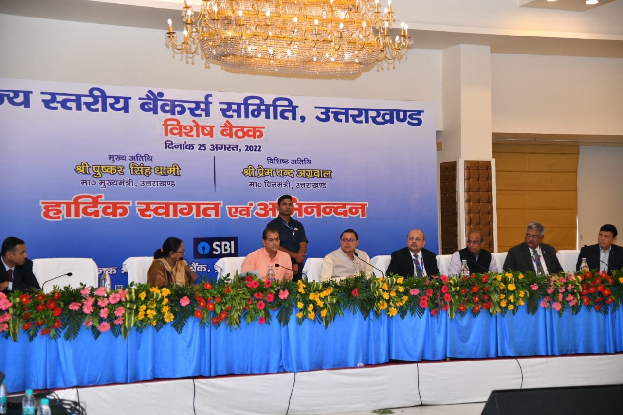 मुख्यमंत्री ने अधिकारियों को निर्देश दिये कि यह सुनिश्चित किया जाए कि जनपदों एवं ब्लॉक स्तर पर बैंकर्स समिति की बैठक नियमित हो। ब्लॉक स्तर पर होने वाली बैठकों में मुख्य विकास अधिकारी भी जाएं। उन्होंने कहा कि हम आजादी के अमृतकाल में प्रवेश कर चुके हैं। आने वाले समय में देश हर क्षेत्र में तेजी करे, राज्य में हर क्षेत्र में प्रगति हो, इस दिशा में सबको मिलकर प्रयास करने होंगे। उन्होंने कहा कि केन्द्र एवं राज्य सरकार की जन कल्याणकारी योजनाओं की आमजन तक पूरी जानकारी हो और वे योजनाओं का पूरा लाभ उठा सकें, इसके लिए व्यापक स्तर पर जागरूकता अभियान भी चलाए जाएं। इस अवसर पर वित्त मंत्री प्रेमचन्द अग्रवाल, अपर मुख्य सचिव राधा रतूड़ी, सीजीएम एस.बी.आई कल्पेश कृष्ण कान्त, जी.एम एस.बी.आई अभय सिंह, सीजीएम नाबार्ड भाष्कर पंत, जीएम पीएनबी संजय कांडपाल, उत्तराखण्ड शासन के सचिवगण एवं वरिष्ठ अधिकारी उपस्थित थे।