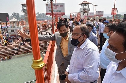 मुख्य सचिव ने निरीक्षण के दौरान दिव्यांगजनों के लिए बने आटोमेटिक हाइड्रोलिक चेयर को देखा। उन्होंने महिला चेंजिंग रूम की संख्या में 10 की और बढ़ोतरी करने, उस एरिया को ढ़कने और श्री गंगा सभा के कार्यालय से सटे महिलाओं के लिए बने चेंजिंग रूम के ऊपर की सीढियों पर महिला पुलिस तैनात करने के निर्देश दिए। इसके बाद मुख्य सचिव दूधाधारी स्थित बाबा बर्फानी अस्पताल में बनी कोविड यूनिट का निरीक्षण करने पहुंचे। उन्होंने मेलाधिकारी स्वास्थ्य डॉ0 अर्जुन सिंह सेंगर से कोविड यूनिट की सुविधाओं, डाक्टरों की तैनाती और अब तक कितने डाक्टरों ने ज्वाइन किया है, इसकी जानकारी ली। मुख्य सचिव ने कोविड परीक्षण केंद्र के काउंटर, वार्ड का निरीक्षण किया। वार्ड में बड़ा एग्जॉस्ट फैन लगवाने के निर्देश दिए। उन्होंने आईसीयू, जनरल वार्ड, शौचालय का निरीक्षण कर आवश्यक दिशा निर्देश दिए। उन्होंने कोविड यूनिट में दो आटोमेटिक हाइड्रोलिक चेयर लगवाने के निर्देश अधिकारियों को दिए। उन्होंने अस्पताल में बनाई जा रही व्यवस्थाओं की प्रशंसा की।