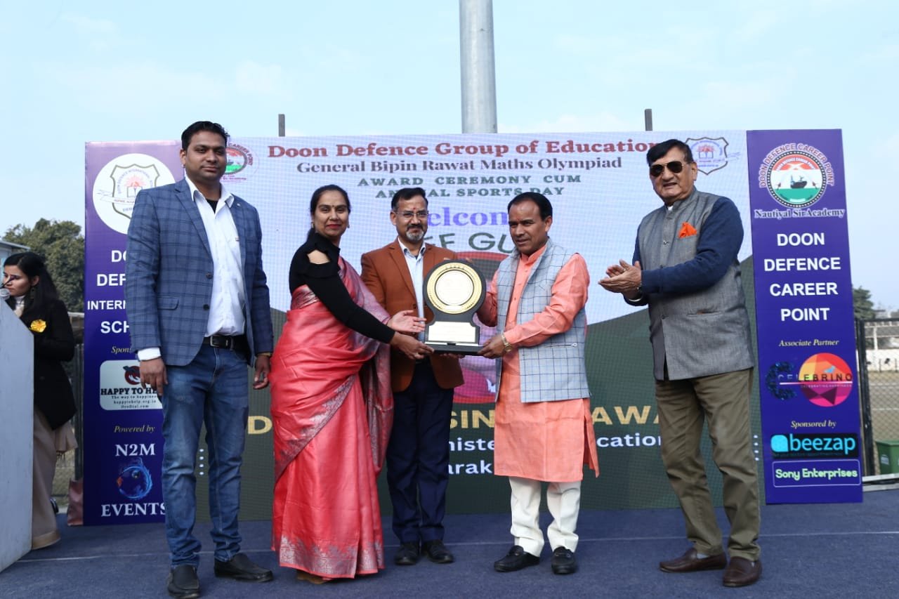 मुख्य अतिथि शिक्षा मंत्री धन सिंह रावत, विशिष्ट अतिथि मेयर सुनील उनियाल गामा व स्वामी दर्शन भारती ने दीप प्रज्वलित कर कार्यक्रम की शुरूआत की। इस दौरान स्कूल के छात्र-छात्राओं द्वारा सरस्वती वंदना प्रस्तुत की गई। जिसके बाद निदेशक जेपी नौटियाल ने कार्यक्रम को संबोधित करते हुए कहा कि देश के प्रथम सीडीएस स्वर्गीय जनरल बिपिन रावत की स्मृति में मैथ ओलंपियाड का आयोजन किया गया था। इस मैथ ओलंपियाड में देहरादून के 40 स्कूलों के छात्र-छात्राओं ने शिरकत की। प्रथम द्वितीय एवं तृतीय स्थान में आने वाले छात्र व छात्राओं को शिक्षा मंत्री डॉ धन सिंह रावत ने पुरस्कार के रूप में 15000 10,000 और 5000 की धनराशि प्रदान की। दून डिफेंस इंटरनेशनल स्कूल के मास्टर परीक्षित नौटियाल ने प्रथम स्थान प्राप्त किया। जबकि बेवरली हिल के मास्टर अर्जुन पंडित व मास्टर अंकुश सिंह ने द्वितीय तथा श्री गोवर्धन शिशु विद्या मंदिर की कुमारी प्राची जसवाल ने तृतीय स्थान प्राप्त किया। इन छात्र-छात्राओं को मुख्य अतिथि शिक्षा मंत्री धन सिंह रावत, विशिष्ट अतिथि मेयर सुनील उनियाल गामा व स्वामी दर्शन भारती ने सम्मानित कर उनके उज्ज्वल भविष्य की शुभकामनायें दीं। वहीं खेल महाकुंभ में आयोजित हुई विभिन्न प्रतियोगिताओं में दून डिफेंस इंटरनेशनल स्कूल के छात्र-छात्राओं ने बाजी मारी। इस दौरान छात्र-छात्राओं द्वारा रंगारंग कार्यक्रमों की प्रस्तुति भी दी गई।इस दौरान स्कूल के छात्र-छात्राओं के साथ ही गिरीश पंचोली व एस.पी पंचोली, श्रीमती मधु भट्ट, कर्नल नौटियाल, शिक्षक-शिक्षिकायें व अन्य कर्मचारी मौजूद रहे।