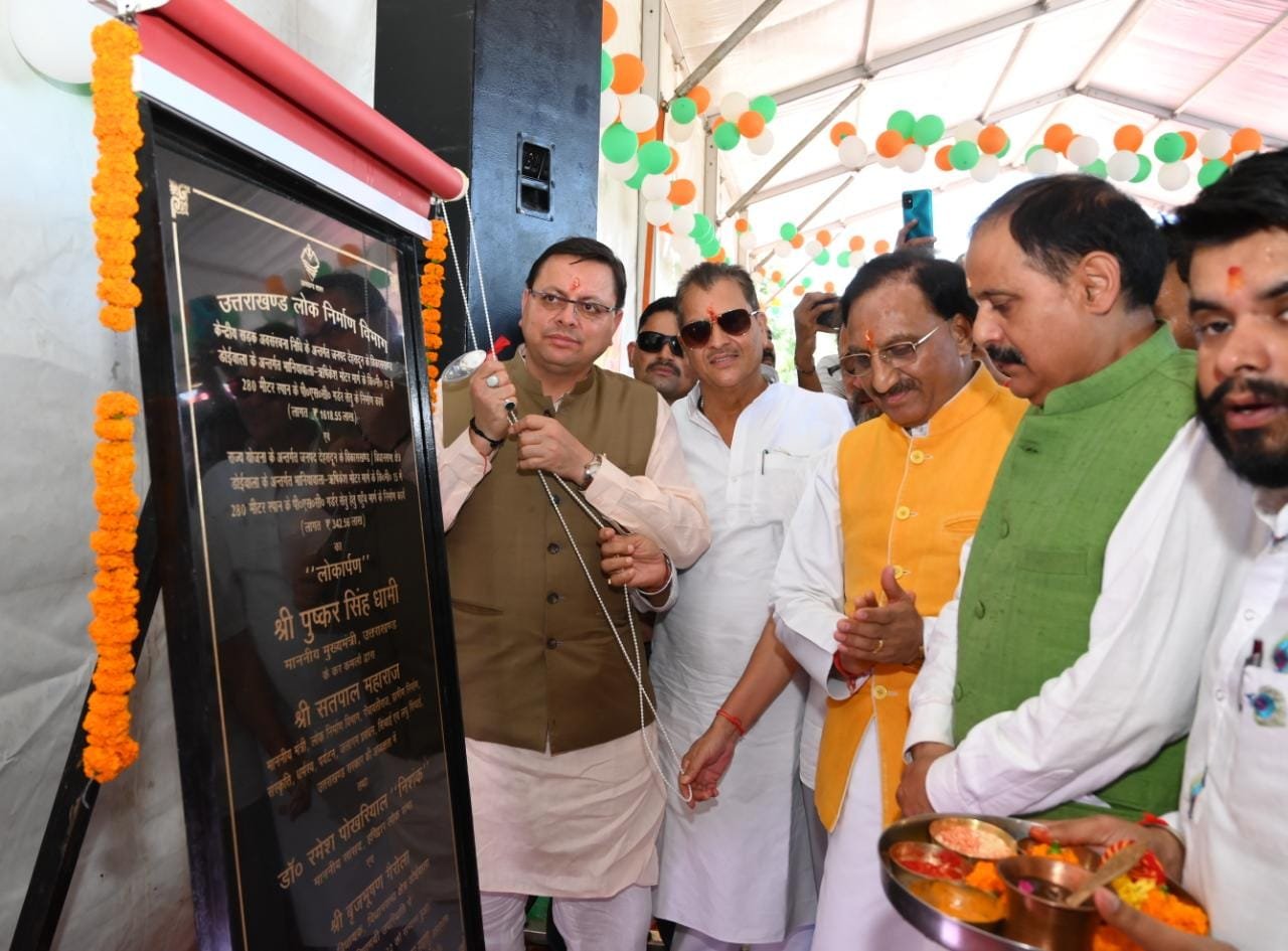 देहरादून। मुख्यमंत्री पुष्कर सिंह धामी ने शुक्रवार को रानीपोखरी, देहरादून में आयोजित कार्यक्रम में प्रतिभाग करते हुए विकासखण्ड डोईवाला के अन्तर्गत भानियावाला ऋषिकेश मोटर मार्ग के कि०मी०15 में 280 मीटर लंबे रानीपोखरी सेतु एवं विधानसभा विकासनगर के अन्तर्गत लम्बरपुर लांघा मोटर मार्ग के कि0मी0 2 में शीतला नदी के ऊपर 180 मीटर लंबे सेतु के निर्माण कार्य का लोकार्पण किया। इस दौरान उन्होंने पुल का निरीक्षण भी किया। मुख्यमंत्री पुष्कर सिंह धामी द्वारा केन्द्रीय सड़क अवसंरचना निधि (1618.55 लाख) के अन्तर्गत जनपद देहरादून के विकासखण्ड डोईवाला के अन्तर्गत भानियावाला ऋषिकेश मोटर मार्ग के कि०मी०15 में 280 मीटर स्पान के पी०एस०सी० गर्डर रानीपोखरी सेतु का निर्माण कार्य व राज्य योजना (342.56 लाख) के अंतर्गत उक्त सेतु हेतु पहुंच मार्ग के निर्माण कार्य का लोकार्पण किया।