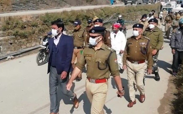 पुलिस अधीक्षक पिथौरागढ़ लोकेश्वर सिंह द्वारा आज पुलिस व एसएसबी फोर्स की देव सिंह मैदान में ब्रीफिंग की गयी तथा आवश्यक दिशा निर्देश दिये गये। तत्पश्चात फ्लैग मार्च करते हुए देव सिंह मैदान से रोडवेज तिराहा, केमू गुप्ता तिराहा, एफटैग तिराहा,घण्टाकरण सिल्थाम होते हुए देव सिंह मैदान में समापन फ्लैग मार्च का समापन किया गया। पुलिस द्वारा आम जनता से आगामी विधान सभा सामान्य निर्वाचन में बिना किसी के दबाव में आकर भयमुक्त होकर मतदान करने तथा कोविड-19 के दृष्टिगत प्रशासन द्वारा जारी दिशा निर्देशों का पालन करने, मास्क धारण करने, सोशल डिस्टेन्सिंग व सैनेटाईजर का प्रयोग करने हेतु अपील की गयी। फ्लैग मार्च में संयुक्त मजिस्ट्रेट पिथौरागढ़ नन्दन कुमार (आईएएस), पुलिस