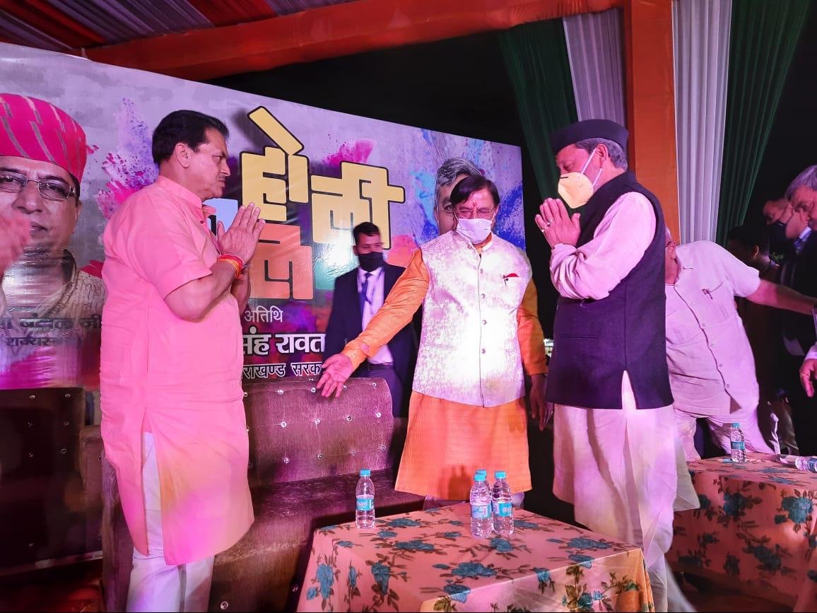 इस अवसर पर कलाकारों द्वारा होली के पवित्र पर्व पर सांस्कृतिक एवं भव्य नृत्य प्रस्तुत किए जिन्हें देखकर सभी मंत्रमुग्ध हो गए। इस अवसर पर कार्यक्रम में उपस्थित होने वाले सभी लोगों पर केसर युक्त सुगंधित चंदन एवं गुलाल का तिलक लगाया गया।कलाकारों की टीम ने लठ मार होली एवं फूलों की होली से वातावरण को उल्लास व उमंग से भर दिया। इस अवसर पर मुख्यमंत्री तीरथ सिंह रावत ने वैश्य समाज को होली की बधाई व शुभकानाएं देते हुए कहा कि वैश्य समाज द्वारा हर वर्ष होली-मिलन का यह आयोजन किया जाता है। उन्होंने कहा कि भारतीय संस्कृति में सभी पर्वों को आपस में मिलजुलकर मनाये जाने की परम्परा रही है।