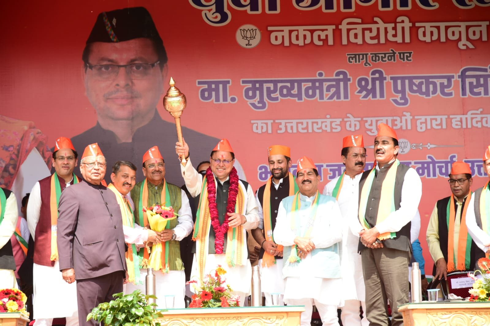 हजारों की संख्या में मौजूद युवाओं का अभिनंदन स्वीकार करते हुए मुख्यमंत्री पुष्कर सिंह धामी ने कहा कि हल्द्वानी में युवाओं द्वारा किए गए इस भव्य स्वागत से मैं अभिभूत हूं। उन्होंने कहा कड़ी मेहनत के दम पर परीक्षा देने वाले नौजवान के हक पर कोई डाका न डाले सके। युवाओं के हिस्से की सफलता का कोई और लाभ न उठा सके इसके लिए राज्य सरकार कड़े से कड़ा कदम उठाने के लिए प्रतिबद्ध हैं। इन्हीं कदमों के अंर्तगत प्रतियोगी परीक्षाओं में नकल रोकने के लिए सरकार ने देश का सबसे कड़ा नकल विरोधी कानून बनाया है। ये कानून नकल माफिया को काल कोठरी के अंदर तक ले जायेगा। राज्य सरकार किसी भी युवा साथी के भविष्य से खिलवाड़ नहीं होने देगी।