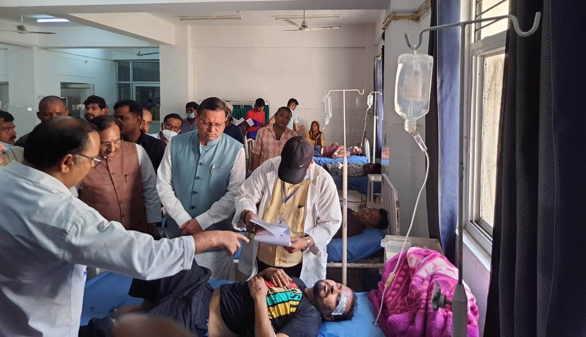 देहरादून। मुख्यमंत्री पुष्कर सिंह धामी ने बुधवार को कोटद्वार बेस अस्पताल में सिमड़ी, पौड़ी में हुई बस दुर्घटनाग्रस्त में घायल हुए लोगों का हालचाल जाना। इस अवसर पर उनके साथ पूर्व मुख्यमंत्री एवं सांसद डॉ. रमेश पोखरियाल निशंक भी मौजूद थे। मुख्यमंत्री ने कोटद्वार बेस अस्पताल में घायलों के परिवारजनों से मुलाकात कर कहा कि घायलों के ईलाज के लिये सरकार द्वारा पूरी व्यवस्था की गई है। मुख्यमंत्री ने अस्पताल में भर्ती घायलों के बारे में डाक्टरों से पूरी जानकारी ली।