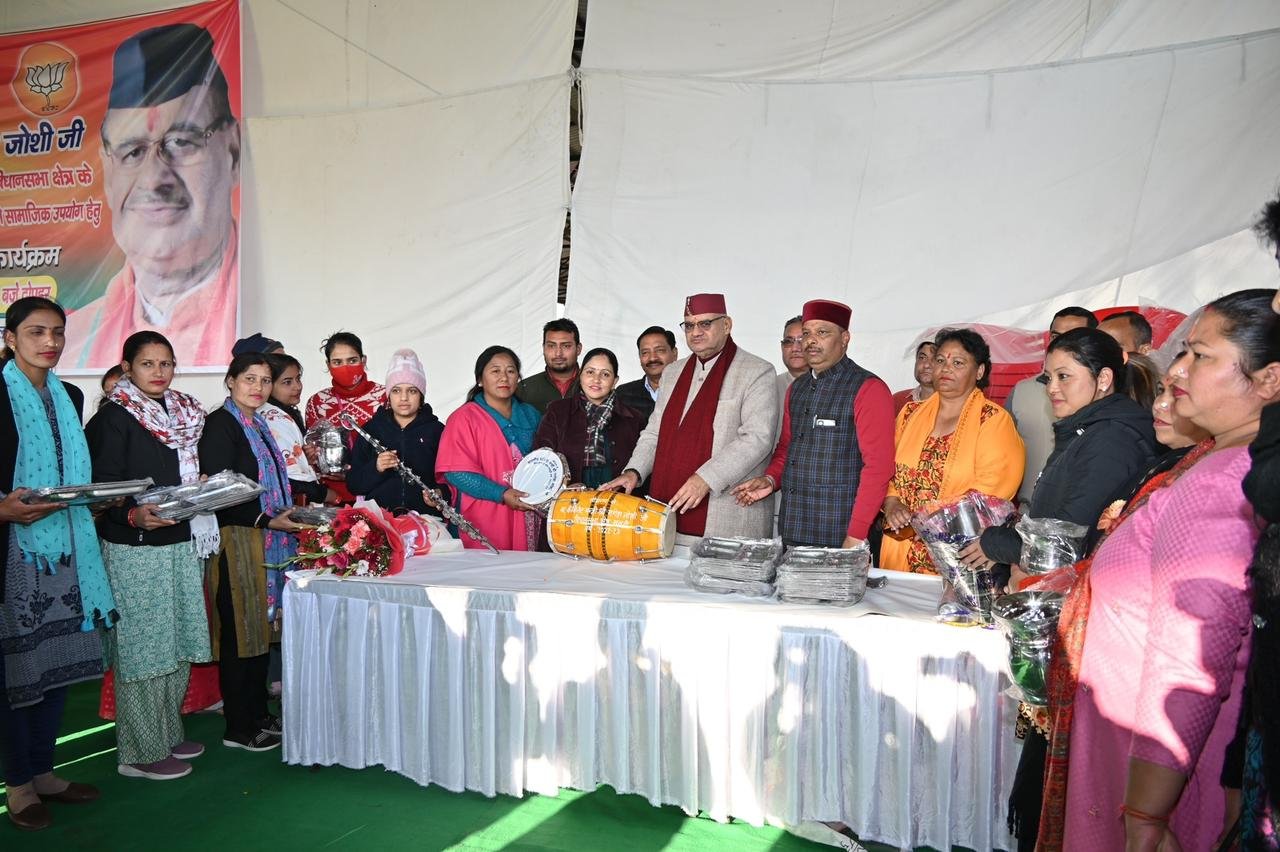 देहरादून।कैबिनेट मंत्री गणेश जोशी ने मंगलवार को सामुदायिक भवन गुनियाल गांव में विधायक निधि से स्वीकृत मसूरी विधानसभा क्षेत्र के भगवंतपुर, भितरली, क्यारकुली, चंद्रोटी, गंगोल पंडितवाडी, गल्जवाड़ी, पुरकुल गांव, सिगली, गाजियावाला, बिष्ट गांव, बिलासपुर कांडली, हरियावाला खुर्द, पुरोहित वाला सहित 15 ग्राम पंचायतों के महिला मंगलदल की महिलाओं को सामाजिक उपयोग हेतु साज सज्जा की सामग्री वितरित किया।
