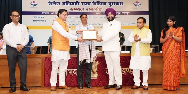 मुख्यमंत्री ने सभी शिक्षकों से अपेक्षा की कि आप सब अपनी मौलिक जिम्मेदारी के महत्व को रेखांकित कर एक ऐसी नई पीढ़ी का निर्माण करें, जो ज्ञान और विवेक के सामंजस्य से परिपूर्ण हो ताकि वह आज की सभी चुनौतियों का सफलतापूर्वक समाधान कर सके। यही हमारे शिक्षक होने की सार्थकता है। यही सच्चे अर्थों में ‘शिक्षक दिवस’ की प्रामाणिकता है और यही डॉ० सर्वपल्ली राधाकृष्णन को श्रेष्ठतम नमन करने का सुअवसर भी है, भारत भूमि ने अनेक उच्च श्रेणी के शिक्षक हमें दिए हैं। मुख्यमंत्री ने कहा कि प्रधानमंत्री नरेन्द्र मोदी जी द्वारा शुरू की गई नई शिक्षा नीति हमारे बच्चों को भविष्य की जरूरतों के लिए तैयार करने का एक प्रयास है, जिसे विभिन्न हितधारकों से विचार-विमर्श के बाद तैयार किया गया है। जिसमें हमारे शिक्षकों की भी बहुत बड़ी भूमिका रही है। उन्होंने कहा कि इस शिक्षा नीति को सफल और फलदायी बनाने की केंद्रीय भूमिका में शिक्षक ही होते हैं। इसे इस तरह से आत्मसात करना होगा कि यह नीति छात्रों के जीवन का आधार बन जाये। मुख्यमंत्री ने कहा कि बाल वाटिका के शुभारम्भ के साथ ही उत्तराखण्ड नई राष्ट्रीय शिक्षा नीति-2020 की शुरुआत करने वाला देश का पहला राज्य है। सरकार द्वारा नई राष्ट्रीय शिक्षा नीति को लागू करने के साथ ही शिक्षकों को सक्षम बनाने हेतु सभी प्रयास किए जा रहे हैं। ताकि शिक्षा को और अधिक प्रभावी बनाया जा सके और छात्रों को भी नई तकनीकों में निपुण किया जा सके। उन्होंने कहा कि प्रधानमंत्री मोदी जी के अमृतकाल के ‘पंच प्रणों’ पर स्कूलों में नियमित रूप से चर्चा की जाए, ताकि छात्रों में इसकी भावना स्पष्ट हो सके। शिक्षा मंत्री डा. धन सिंह रावत ने उपस्थित सभी शिक्षक-शिक्षिकाओं को शिक्षक दिवस की शुभकामनाएं दी। उन्होंने कहा कि सभी के अथक प्रयासों से राज्य में शिक्षा के स्तर में सुधार हुआ है। उन्होंने कहा कि गत वर्ष की भाँति इस वर्ष भी उत्कृष्ट कार्य करने वाले शिक्षकों को सम्मानित कर रहे हैं। इस अवसर पर उन्होंने शिक्षा विभाग द्वारा किए जा रहे कार्यों एवं नवाचारों की जानकारी दी। कार्यक्रम में सचिव विद्यालयी शिक्षा रविनाथ रामन ने सम्मान समारोह में उपस्थित लोगों का स्वागत किया और सम्मान समारोह की विस्तृत जानकारी दी। महानिदेशक विद्यालयी शिक्षा बंशीधर तिवारी ने धन्यवाद ज्ञापित किया। कार्यक्रम में अपर सचिव शिक्षा रंजना राजगुरु, शिक्षा विभाग के अन्य उच्च अधिकारीगण और पुरस्कार प्राप्त करने वाले शिक्षक-शिक्षिकाएं उपस्थित रहीं।