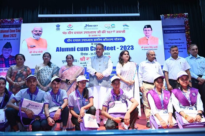 । ग्राम्य विकास विभाग द्वारा आज संस्कृति आडिटोरियम देहरादून में पं0 दीन दयाल उपायध्याय की जयंती के अवसर पर दीन दयाल उपाध्याय ग्रामीण कौशल्य योजना के अन्तर्गत एल्युमिनी कम सीएक्सओ मीट का आायोजन किया गया। एल्युमिनी कम सी0एक्स0ओ0 मीट कार्यक्रम का शुभारम्भ प्रदेश के ग्राम्य विकास मंत्री गणेश जोशी द्वारा किया गया। इस अवसर पर ग्राम्य विकास मंत्री द्वारा सभा ग्रामीण युवाओं को सम्बोधित करते हुये कहा कि यह कार्यक्रम कार्यरत तथा प्रशिक्षणरत युवाओं के अनुभवों को साझा करने का मंच है साथ ही सी0एक्स0ओ0 मीट के माध्यम से नियोक्ताओं के साथ भी अनुभव साझा करते हुये उद्योग की मांग के अनुसार युवाओं के कुशल कार्यबल का तैयार करने में सहायता मिलती है। उन्होने यह भी कहा कि इस प्रकार के आयोजन से युवाओं को रोजगार के लिये प्रोत्साहन तथा रेाजगार के अधिकाधिक अवसर भी मिलते है।