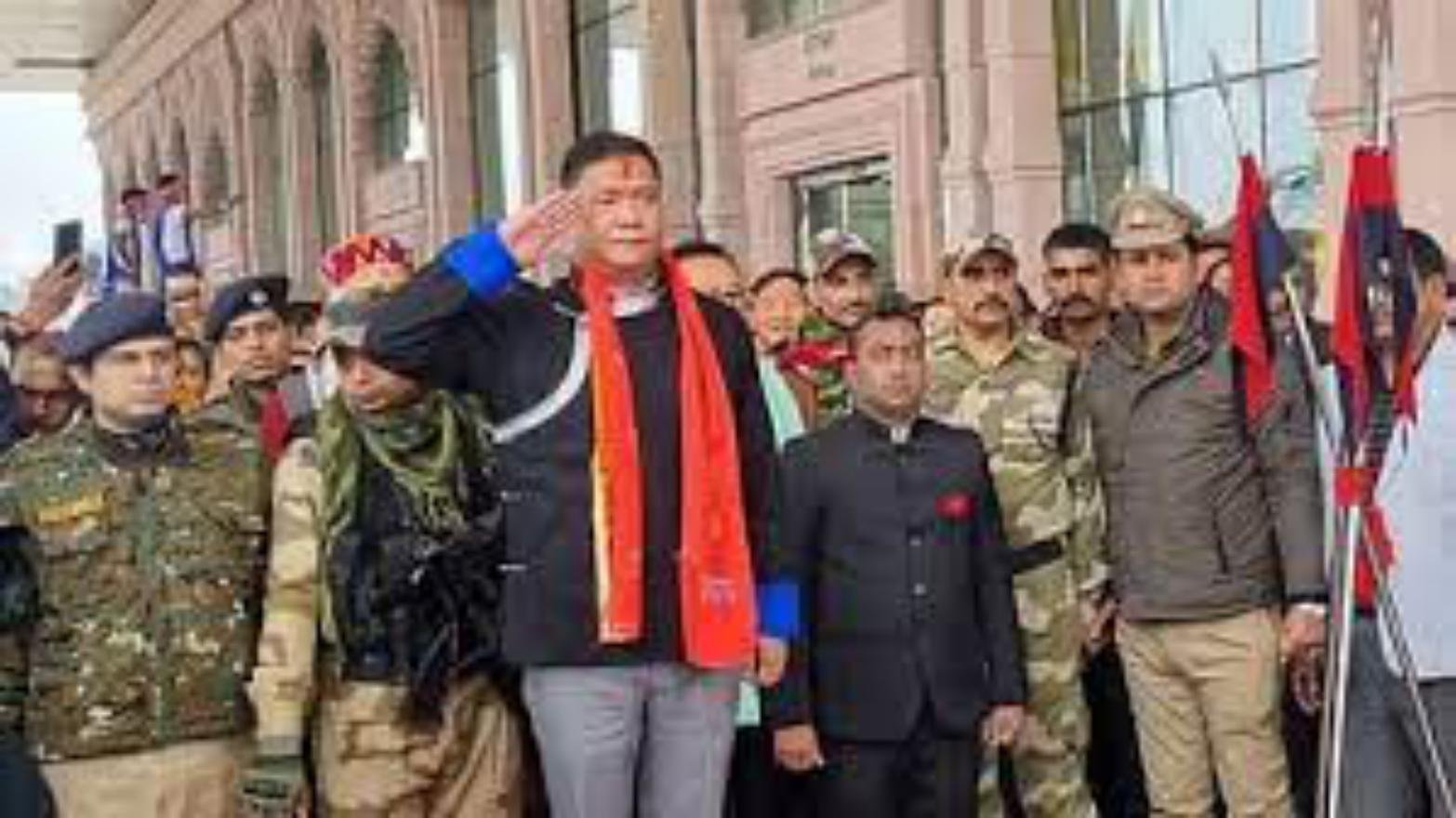 अरुणाचल प्रदेश के मुख्यमंत्री पेमा खांडू अपनी कैबिनेट के साथ अयोध्या पहुंच गए हैं। वह अयोध्या एयरपोर्ट पर पहुंचे तो भाजपा नेता व कार्यकर्ताओं ने उनका स्वागत किया।