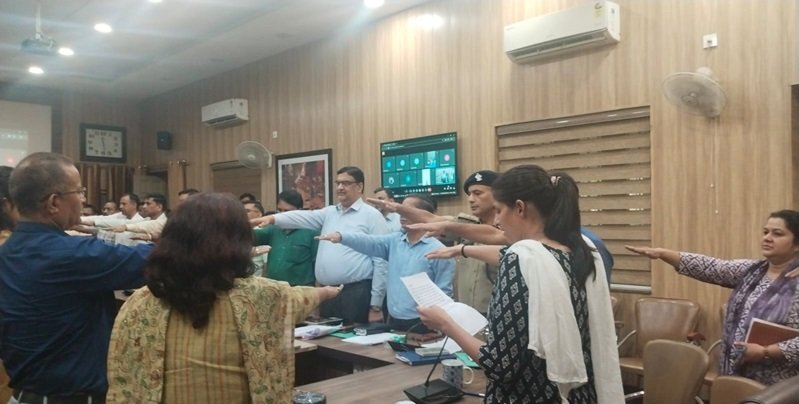 देहरादून। जिलाधिकारी सोनिका ने ऋषिपर्णा सभागार कलेक्ट्रेट में उपस्थित अधिकारियों को नशामुक्ति की शपथ दिलाई। उन्होंने कहा कि स्कूलों में नर्सरी से ही बच्चों को नशे के दुष्प्रभावों की जानकारी दी जानी चाहिए ताकि उनके मन में नशे के खिलाफ चेतना जागृत रहे। जिलाधिकारी ने नशा मुक्त भारत अभियान को प्रभावी और सक्रिय रूप से लागू करने के निर्देश भी दिए। उन्होंने संबंधित अधिकारियों से जनपद में नशामुक्ति अभियान को प्रभावी तरीके से लागू करने के लिए कहा।