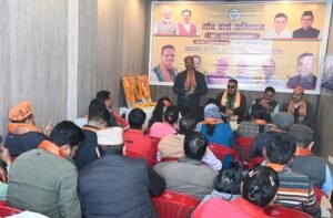 देहरादून। कैबिनेट मंत्री गणेश जोशी ने भारतीय जनता पार्टी के “गांव चलो अभियान” कार्यक्रम के तहत रविवार को मसूरी विधानसभा क्षेत्र के गुनियालगांव बूथ संख्या 109 जमोलीवाला में बूथ समिति और पन्ना प्रमुखों की बैठक ली। कैबिनेट मंत्री गणेश जोशी ने सर्वप्रथम बूथ पर दीवार लेखन किया और पार्टी कार्यकर्ताओं से सरल ऐप तथा नमो ऐप भी डाउनलोड करवाये। बैठक के दौरान काबीना मंत्री ने बूथ पर रहने वाले लाभार्थियों से जन संवाद किया और उनके अनुभवों को सुना। जिसमें आयुष्मान योजना, जन-धन, उज्जवला आदि योजनाओं के लाभार्थी उपस्थित रहे। कैबिनेट मंत्री ने ग्रामीण क्षेत्र में विभिन्न महिला स्वयं सहायता समूह की महिलाओं से भी संवाद किया और समूह के बारे में विस्तार से जानकारीली।