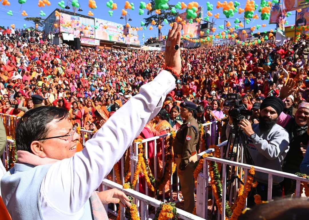 चम्पावत/देहरादून। मुख्यमंत्री पुष्कर सिंह धामी रविवार को मातृ-शक्ति को समर्पित “संगज्यू-2024“ कार्यक्रम में जनपद चंपावत के लोहाघाट पहुंचे। इस अवसर पर मुख्यमंत्री ने राजकीय इंटर कॉलेज लोहाघाट से रामलीला मैदान लोहाघाट तक विशाल रोड शो में प्रतिभाग किया। रोड शो में हजारों की संख्या में जनपद के विभिन्न क्षेत्रों से जनता पहुंची जनता ने पुष्प वर्षा कर प्रदेश के मुख्यमंत्री का भव्य स्वागत किया। मुख्यमंत्री श्री धामी ने रोड शो के दौरान लोगों का अभिवादन स्वीकार किया। कार्यक्रम के दौरान पहाड़ की संस्कृति की झलक देखने को मिली। जिसमें सांस्कृतिक दलों और छोलिया नृत्य, स्थानीय जनता द्वारा ढोल दमाऊ बजाकर व पारंपरिक परिधानों में सज धज कर महिलाओं ने फूल बरसाकर मुख्यमंत्री का स्वागत किया। इससे पूर्व महिला पुलिस द्वारा मुख्यमंत्री को गार्ड ऑफ ऑनर दिया गया। मातृशक्ति को प्रोत्साहित करने के उद्देश्य पर आधारित कार्यक्रम संग्ज्यू – 2024 के दौरान महिला पीआरडी, एनसीसी, एनएसएस व नर्सिंग कॉलेज की महिलाओं,बालिकाओं के अतिरिक्त विभिन्न विद्यालयों की छात्राएं व स्वयंसेवी संस्थाओं की महिलाओं द्वारा मुख्यमंत्री जी का स्वागत किया गया। मुख्यमंत्री ने देवी शक्ति स्वरूप 9 कन्याओं का पूजन किया तथा आशीर्वाद प्राप्त कर प्रदेश की सुख, शांति व समृद्धि की कामना की।