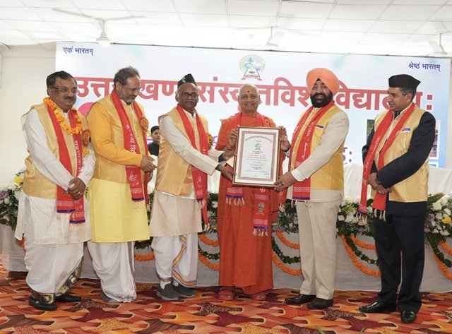 देहरादून/हरिद्वार: उत्तराखण्ड संस्कृत विश्वविद्यालय, हरिद्वार के दीक्षांत समारोह में शुक्रवार को राज्यपाल लेफ्टिनेंट जनरल (सेवानिवृत्त) गुरमीत सिंह सम्मिलित हुए। इस अवसर पर उन्होंने स्वामी गोविंद देव गिरी, डॉ. चिन्मय पंड्या और आचार्य श्रीनिवास बरखेड़ी को विद्या वाचस्पति (डी लिट) की उपाधि प्रदान की। इसके अलावा, उन्होंने छात्र-छात्राओं को स्वर्ण पदक, पीएचडी उपाधि तथा स्नातक एवं परास्नातक की डिग्रियां भी दीं।