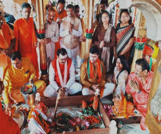 उत्तर प्रदेश के उप मुख्यमंत्री केशव प्रसाद मौर्य तीन दिन के प्रयागराज प्रवास पर हैं। शुक्रवार को प्रधानमंत्री नरेंद्र मोदी जब केदारनाथ में पूजन कर रहे थे, उसी समय संगमनगरी में भाजपाई भी अलग-अलग शिवालयों में भगवान भोलेनाथ की उपासना में लीन रहे। इसी क्रम में उप मुख्यमंत्री केशव ने भी प्राचीन शिवालय मनकामेश्वर मंदिर में जलाभिषेक किया। इस दौरान पूजन-अर्चन करके उन्हाेंने देश की खुशहाली और समृद्धि की कामना की।